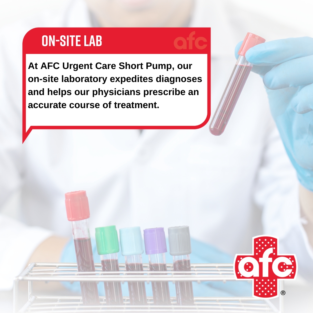 An AFC center is more than an urgent care clinic. Not sure about which service to select. The majority of our labs results come back within minutes and we can provide treatment same day.